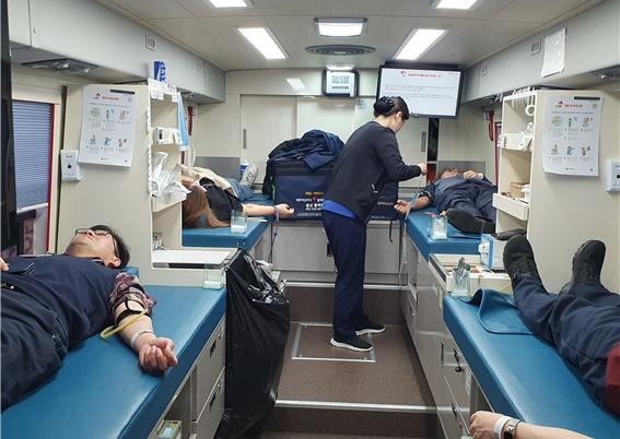 이미지 확대보기월성본부는 헌혈 희망자 사전신청을 받아 개인별 헌혈시간을 조정해 대기시간을 없애고, 순환차량을 운행하는 등 헌혈운동을 적극 지원했다.