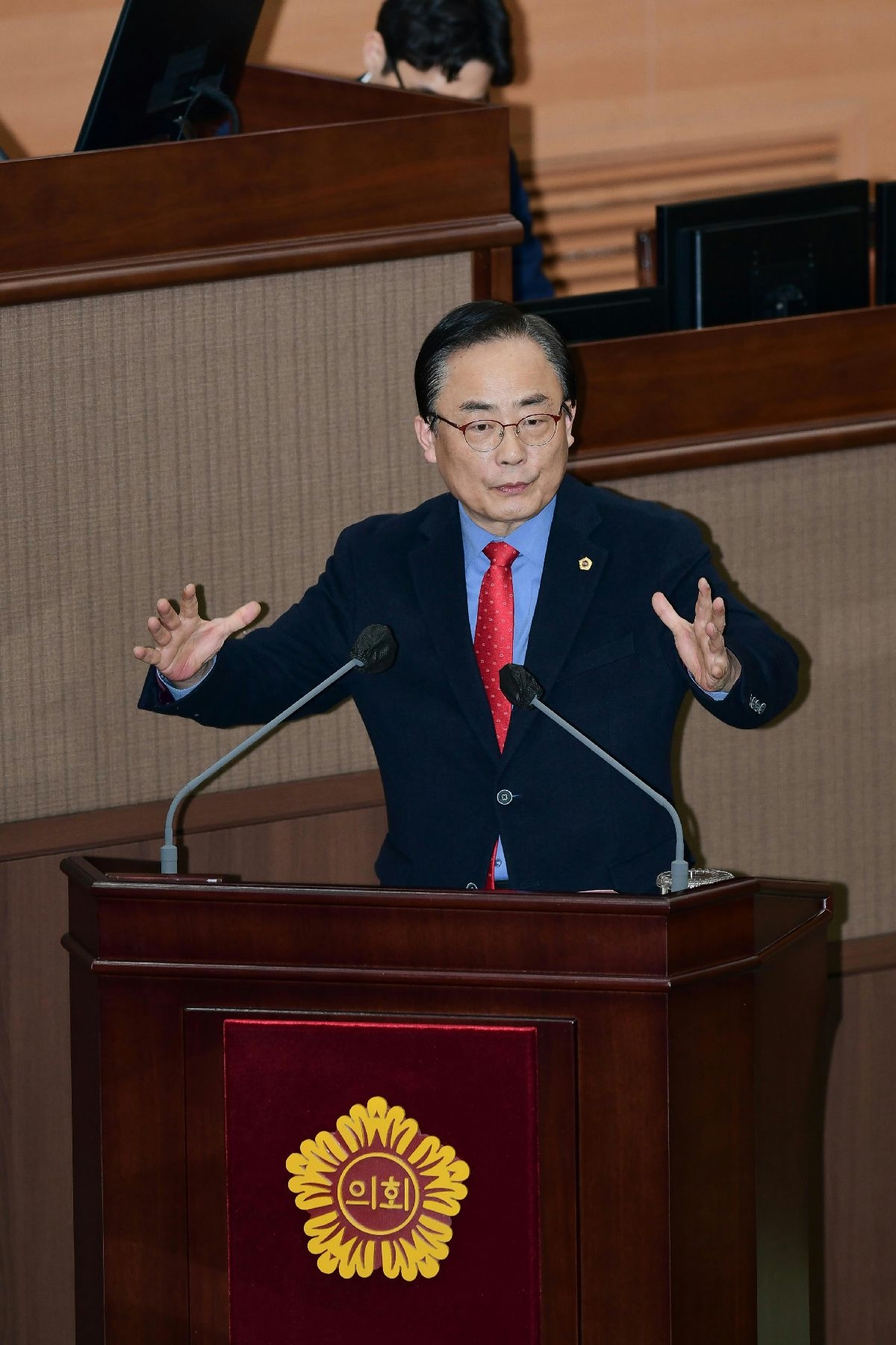 이미지 확대보기김 의원은 시정질의에서 한국전쟁 당시 서울 탈환의 역사적 중요성과 함께 대한민국의 국기인 태극기가 국민들의 애국심과 함께한 역사를 언급했다.