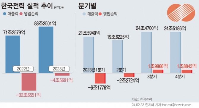 러시아·우크라이나 전쟁을 전후로 원가보다 낮은 가격에 전기를 판 한전은 2021년부터 2023년까지 3년간 약 43조원대의 누적 영업손실을 봤다. 작년 세 차례 전기요금 인상으로 수익 구조가 점차 정상화하는 추세지만 전례가 없던 2021∼2023년 충격의 결과물인 40조원대 누적 적자는 여전히 한전에 큰 경영 부담으로 작용하고 있다.