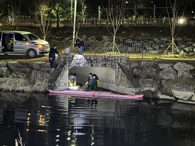 이후 미사강변루나리움 아파트 앞 우수박스에서 유류가 유출된 것을 확인하고, 유출지점 인근 우수관로와 우수맨홀을 점검하는 등 발생 원인을 역추적한 끝에 유출지점으로부터 약 800m 떨어진 A 사업장에서 유류가 흘러나온 사실을 파악했다.
