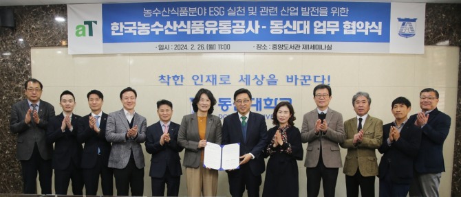 이에 대해 이주희 동신대 총장은 “협약을 계기로 aT와 한 발짝 더 가까워지고 우리나라 농수산식품 분야 산업과 지역 발전을 위해 다양한 교류를 진행해 가길 바란다”며 “검소하지만 초라하지 않고 화려하지만 사치스럽지 않은 행동하는 상식인들이 되도록 노력하겠다”고 밝혔다.
