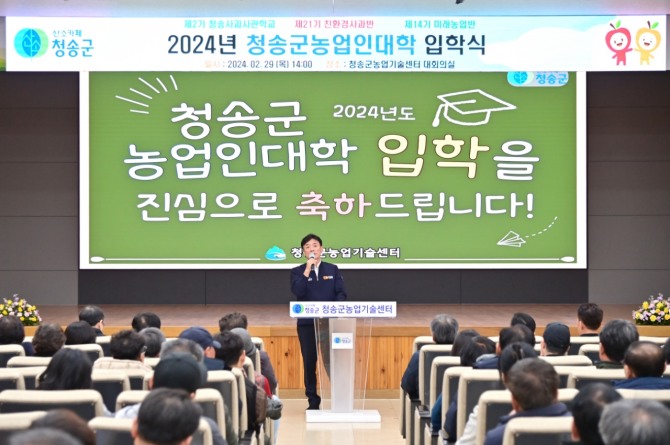청송군농업인대학 학장 윤경희 청송군수는 “농업인대학 학생들의 입학을 진심으로 축하드린다.”며 “시대가 변화하는 흐름에 따라 배우고자 하는 열의가 장차 전문농업인으로 성장하는 발판이 되고, 나아가 청송사과 산업의 미래가 되어주길 바란다.”고 전했다.