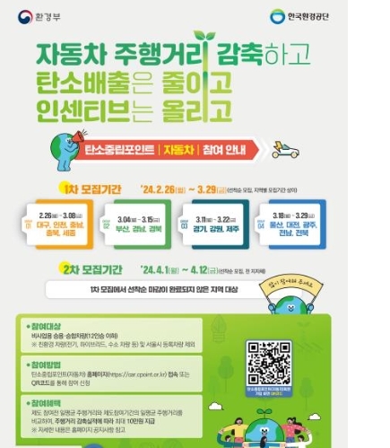 참여를 원할 경우 탄소중립포인트(자동차) 홈페이지에서 회원가입한 후 2-3일 내로 한국환경공단에서 발송하는 문자메시지의 URL을 실행해 번호판을 포함한 차량 전면 사진과 누적주행거리(ODO)가 표시된 계기판 사진을 제출하면 된다. 한국환경공단의 가입 승인되면 승인 문자가 전송된다.