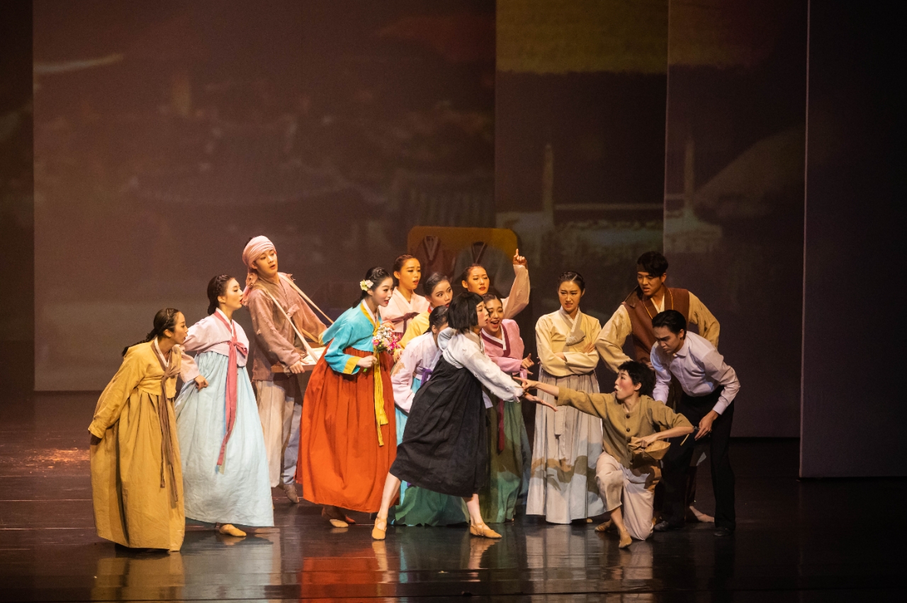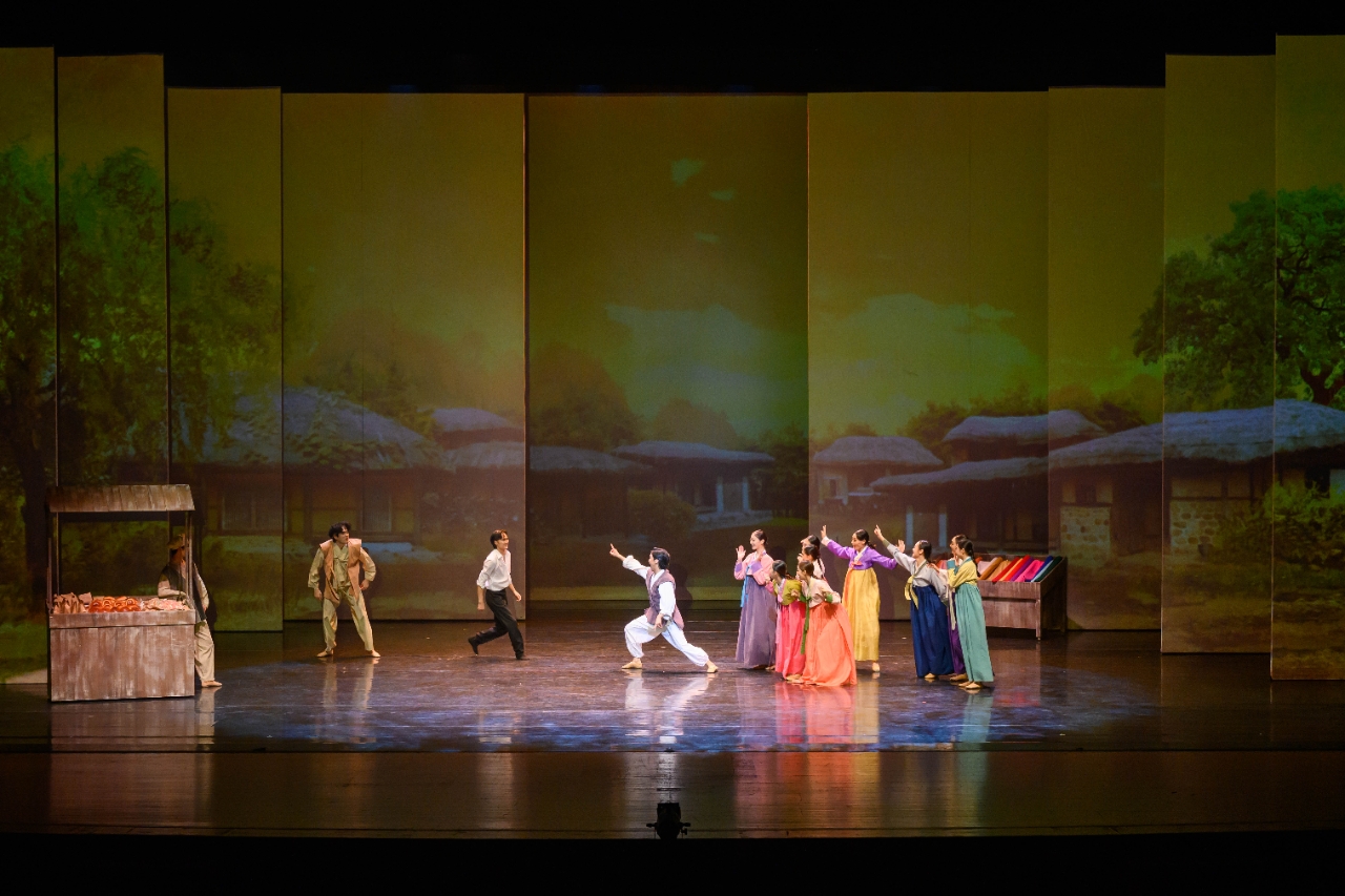 이미지 확대보기3월 8일(금) 7시 30분, 9일(토) 2시·5시 세 차례, 과천시민회관 대극장에서 과천문화재단·서울발레시어터 주최, 서울발레시어터 주관, 최진수 총연출의 전막 발레극 「화양연화」(花樣年華)가 공연되었다. 기억해야 할 이야기의 시대적 배경은 일제강점기이다. 공간은 조선의 경성에서 청나라 말의 상하이를 오간다. 겨를이 없어서 광범하지 않은 이야기, 대한독립(大韓獨立)을 위해 희생한 청춘들의 뜨거웠던 이야기가 전개된다. 「화양연화」는 견고한 이야기, 무대를 꽉 채운 볼거리, 경계를 넘나드는 발레의 매력과 현대감을 발산한다.