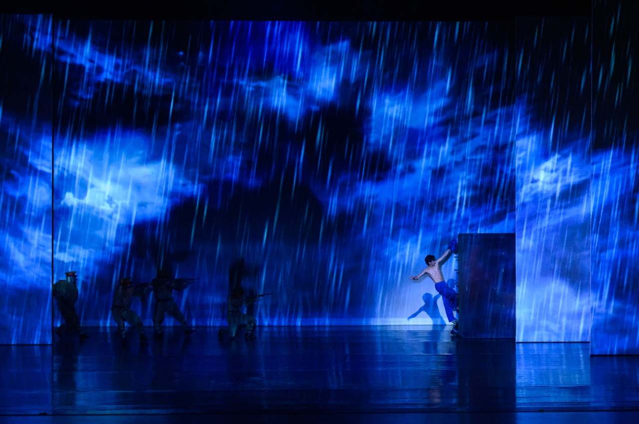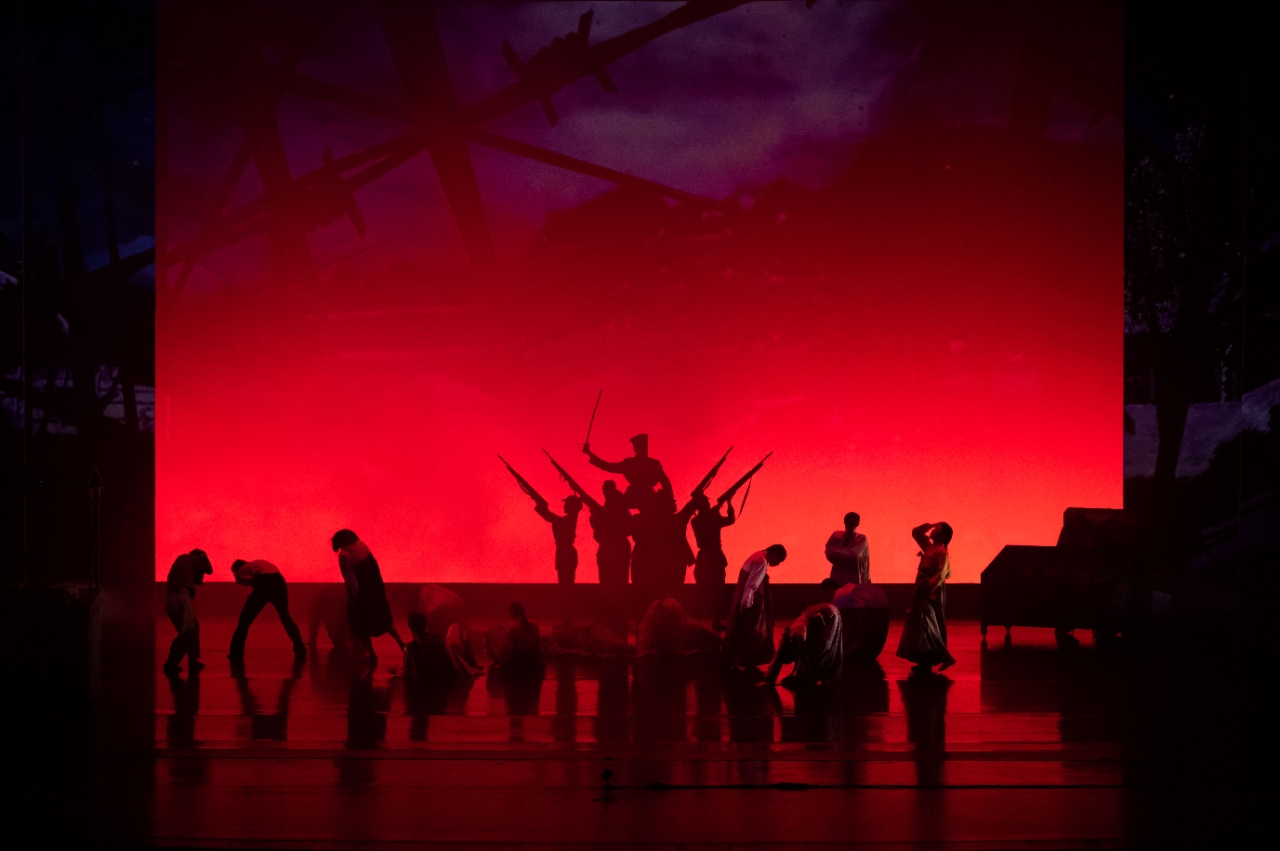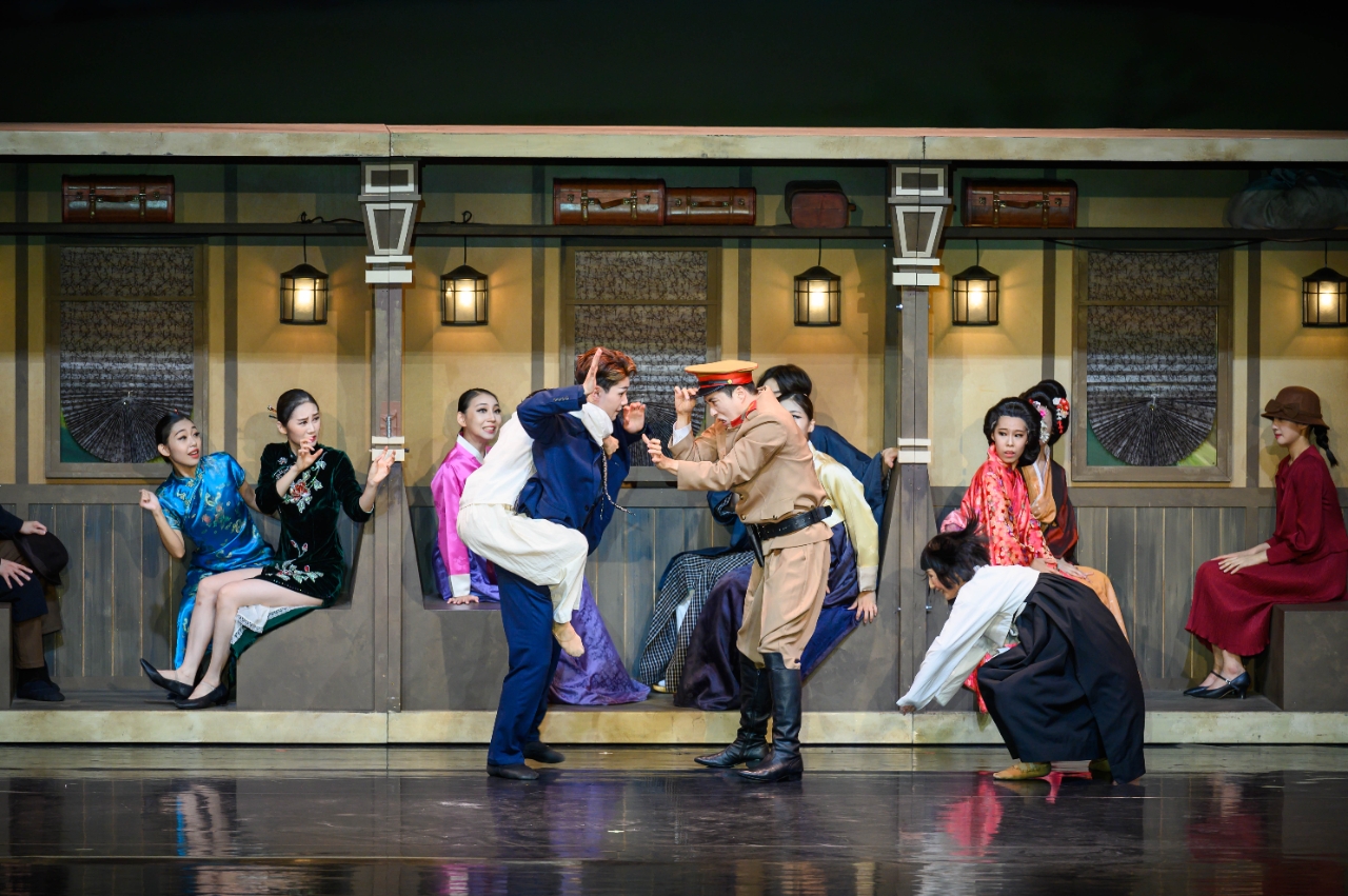 이미지 확대보기비극적 서사를 한민족 의지로 승화시킨 작품은 오만에서 빚어진 과거를 연상시킨다. 보통 사람들이 써낸 인상 깊은 장면들이 스쳐 간다. 카바레 장면은 전투 장면을 대치한다. 독립군, 일본군 모두 생존자가 없다. 연출자는 생존자가 없는 침략을 표현하면서, 전쟁은 일어나서는 안 되는 만행이었음을 새삼 밝힌다. 두 사람이 탄 기차, 연출자는 안타까움에 이열과 소천 두 사람만이 기차에 앉아있는 장면을 연출한다. 아름다운 시절에 청춘들이 만났더라면 얼마나 좋았을까? 머리를 땋은 흰 원피스의 조선 여성의 군무는 장관이었다.