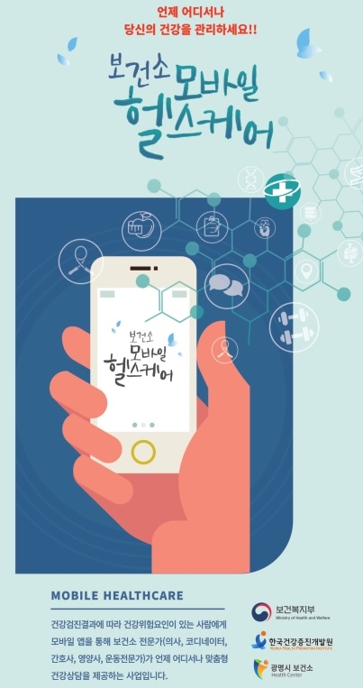 모바일 헬스케어는 의사, 코디네이터, 간호사, 영양사, 운동전문가 등 보건소 전문인력이 스마트기기와 모바일 애플리케이션을 이용해 대상자의 건강 습관을 모니터링한 후 개인별 맞춤 건강관리 서비스를 6개월 동안 제공하는 서비스이다.