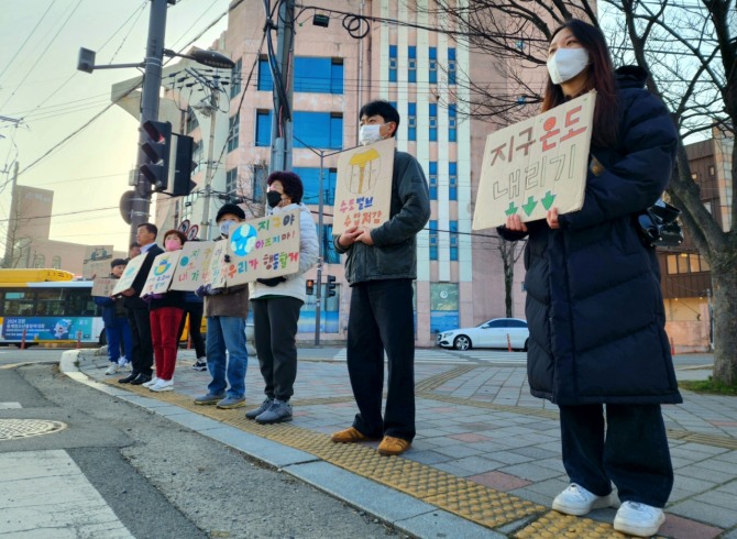 동 주민자치회는 폐종이 등을 활용해 직접 만든 손팻말로 기후위기 대응을 위한 행동에 함께해 줄 것을 호소했다.