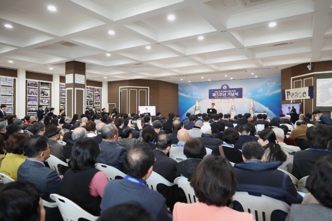 이미지 확대보기지구촌 전쟁종식 평화 선언문(DPCW) 제8주년을 맞아 사단법인 하늘문화세계평화광복(이하 HWPL)은 14일 ‘평화의 정신 구축 : 제도적 평화를 위한 문화 간 대화와 이해’라는 주제로 기념식을 개최했다.