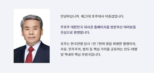 이 대사는 지난 12일 호주 정부에 한국 대사로서의 신임장 사본을 제출하고 공식 활동에 들어갔다.