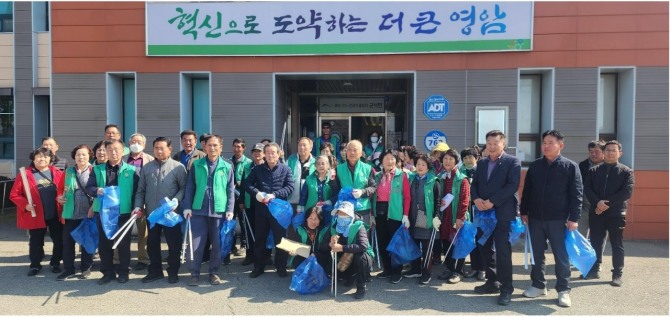 이미지 확대보기전남 영암군 군서면 남·녀새마을지도자회가 15일 면 소재지 일대에서 걷고 뛰면서 방치된 쓰레기를 치우는 환경정화 활동 줍깅을 실시했다.