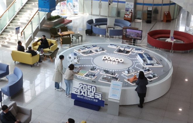 포스코그룹이 추진하고 있는 리튬, 니켈 등 이차전지소재 원료부터 양·음극재와 재활용까지 친환경 자원 순환체계(Closed Loop)를 단계별로 잘 보여주고 있어 시청사를 찾는 시민들에게 색다른 볼거리를 제공하고 있다.