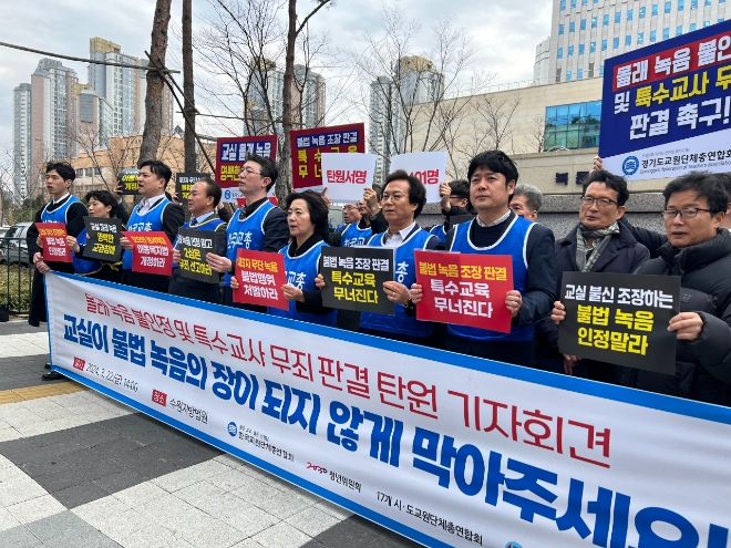 이들 교원단체는 2심 법원이 A씨에 대해 무죄 판결을 내려줄 것을 탄원하면서, 교실 등 교육현장에서의 몰래 녹음을 예외 없이 증거로 불인정하고 강력히 처벌할 것을 재판부에 촉구했다.