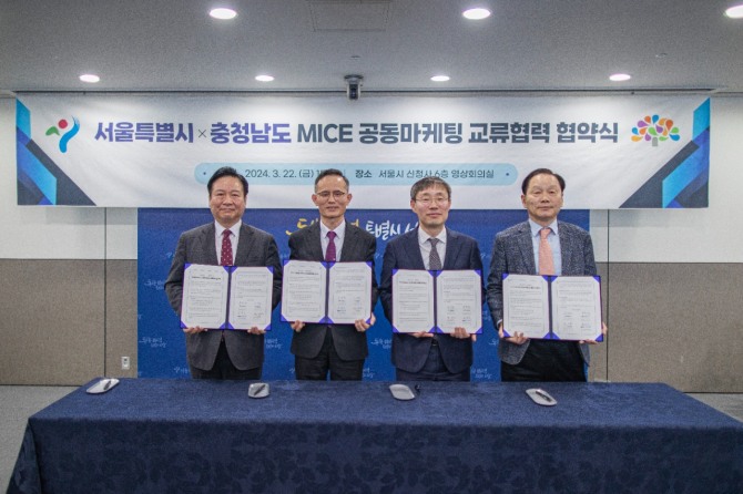 이미지 확대보기서울시와 서울관광재단은 지역특화 MICE 공동마케팅을 위해 지난 22일 15시(서울시청 6층 영상회의실)에 서울특별시, 충청남도, 서울관광재단, 충남문화관광재단 4자 간의 ‘MICE 공동마케팅 상호 교류협력 협약’을 체결했다.