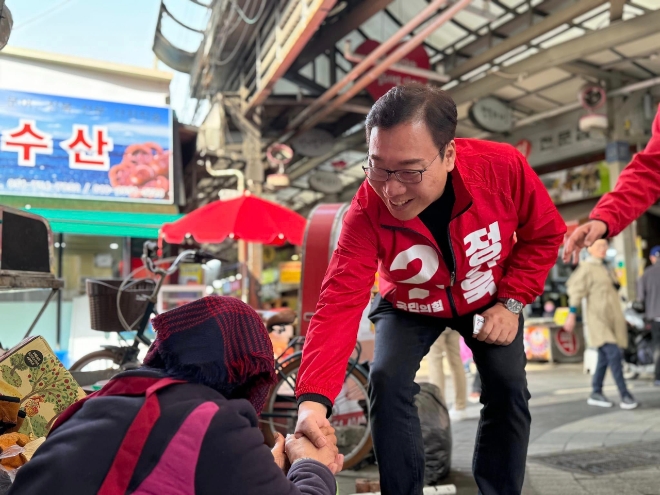 이어 정 후보는 "정치의 본령은 약속과 믿음이다. 무소속 출마한 장 후보에게 정중히 부탁드린다"며 "여야가 맞선 총선 상황이 만만치 않다. 장 후보가 더 잘 알 것이다. 오직! 수영, 오직! 단결만 생각해 달라. 분열로 함께 넘어지지 말고, 국민의힘 깃발 아래 함께 가자"고 호소했다.