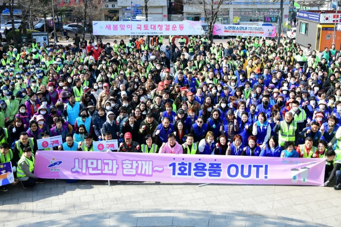 이미지 확대보기이번 캠페인은 새봄맞이 국토대청결의 날을 맞아 지역 시민들을 대상으로 1회용품 사용 줄이기 정책을 홍보하고 다회용품 사용을 독려하기 위해 마련됐다.