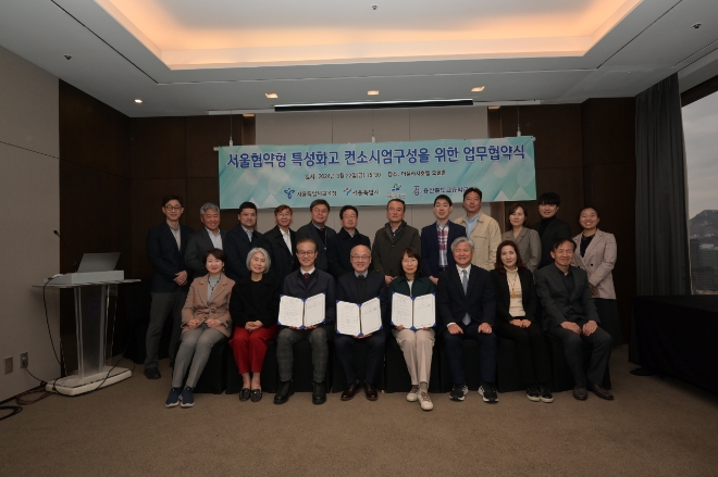 이미지 확대보기25일 시교육청에 따르면 지난 22일 ‘서울협약형 특성화고 컨소시엄 구성을 위한 업무협약식’에 설세훈 부교육감과 서울시, 용산구, 용산철도고, 서울교통공사, 코레일서울본부, KRTC, 대아티아이 등 관계자들이 참석해 협약을 맺었다.