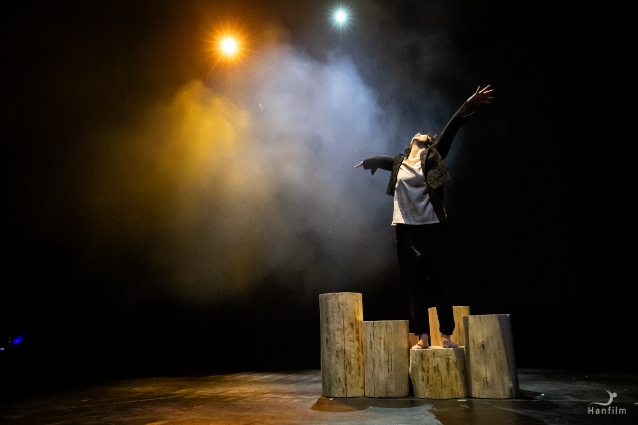 이미지 확대보기프롤로그, 1장, 2장의 축하는 제3장 ‘Beginning Again’에 대한 겸손한 예의 표현이다. 통나무 위에서의 진지한 사유는 현대무용의 특징을 표현해내며 무수한 움직임과 열정으로 세월을 관통한다. 통나무는 삶의 나이테다. 고단함을 모르는 안무가 최효진은 명료해진 삶의 부표를 향해 걷고 있다. 모든 역할을 완수해내며, 사계의 쳇바퀴를 빛의 수레바퀴로 만들면서 내 몫의 하늘(The Sky of My Share)을 만들어 가는 작업은 아름답다. 그 길이 만인을 대표하는 아이들(특별출연 김태헌, 김태윤)과 함께라면 더욱 즐겁다.
