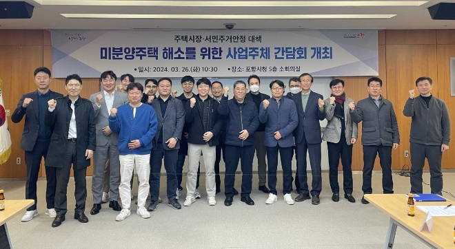 이날 간담회는 미분양 아파트 8개 단지 시행사 및 분양 관계자 등 17여 명이 참석했다. 시행사 관계자는 포항시에 영일만대교 건설과 기업 유치, 각종 개발사업을 추진해 경기부양과 인구 유입을 건의했다.