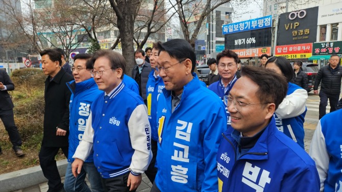 이미지 확대보기당시 이 대표와 민주당 인천 지역구 14명의 국회의원 후보들과 4∙10 총선 출정식에 참여하고 있었다.