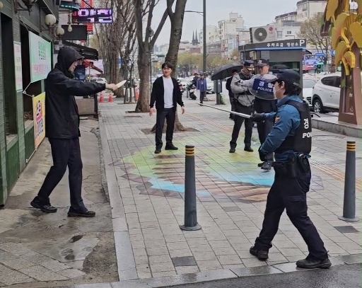 이미지 확대보기이번 훈련은 3일 중원구 은행동 은행시장에서 선거유세 방해 실제 상황을 가정해, 경찰 및 소방서 등 관계자가 선거 관련 긴급상황 매뉴얼을 익히고 역할을 숙지하여 현장 대응 역량을 강화하기 위해 진행했다.