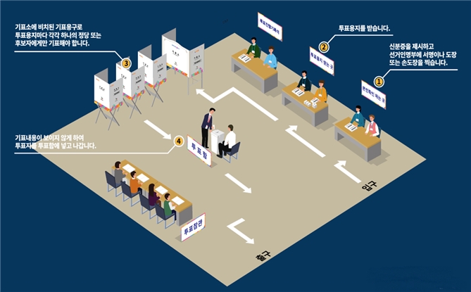 선거일 투표는 주민등록지를 기준으로 각 선거인별로 지정된 투표소에서만 할 수 있다. 내 투표소 위치는 각 가정으로 발송된 투표안내문 또는 투표소 찾기 연결 서비스, 지방자치단체의 ‘선거인명부 열람시스템’에서 찾을 수 있다.