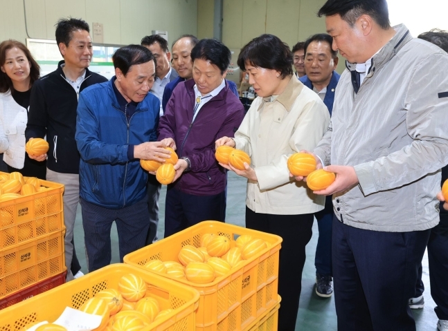 송미령 장관은 “기상 악화 등 어려운 여건에도 투광성을 높이기 위해 직접 시설 비닐을 세척하는 등 세심한 관리로 참외 생육이 회복돼 안정적인 공급이 가능할 것으로 기대된다"고 말했다.