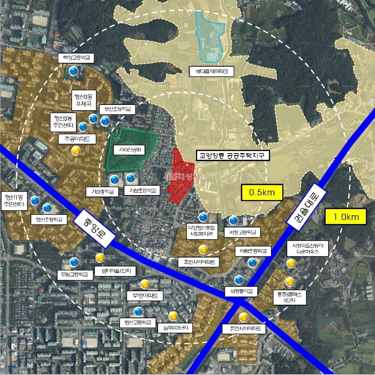 2022년 정비구역으로 지정된 바 있는 행신1-1구역은 고양시 덕양구 행신동 222번지 일원으로 창릉, 능곡, 행신 택지개발지구로 둘러싸여 있는 저층 주거 지역이다. 사업계획서에 따르면 용적률 250%이하, 최고 층수 29층, 2개 단지 10개 동 663세대 규모의 공동주택을 건설·공급할 계획이다.