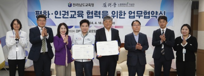 이미지 확대보기전라남도교육청(김대중교육감)과 김대중노벨평화상기념관(관장 김두복)은 18일 전남교육청에서 미래세대 평화·인권교육을 위한 업무협약을 맺었다.