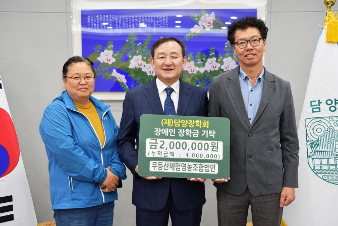 이미지 확대보기담양군은 지난 15일 무등산체험영농조합법인(대표 김명우)에서 지역인재 육성을 위해 장애인 장학금 200만 원을 기탁했다고 18일 전했다.