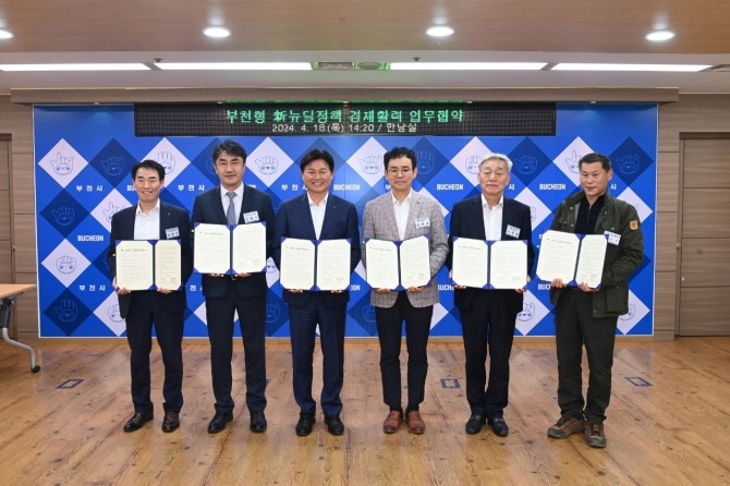 이미지 확대보기부천시는 지난 18일 건설분야 지역경제 활성화를 위해 롯데건설 등 5개 시공사와 ‘부천형 신(新)뉴딜정책 경제활력’ 업무협약을 체결했다.