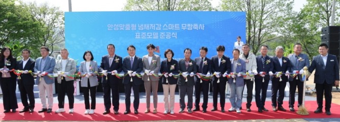 이미지 확대보기경기도 안성시 죽산면에서 '안성맞춤형 냄새저감 스마트 무창축사 표준모델' 준공식이 19일 개최됐다.