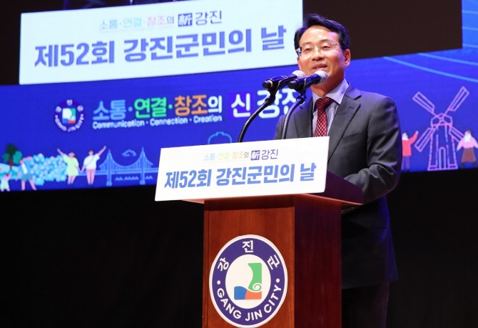 이어 강 군수는 “강진~광주간 고속도로가 2년후 쯤 개통 예정이고, 철도는 올해 안에 시운전에 들어갈 것으로 예상되는 등, 다시한번 ‘동순천 서강진 시대’의 도래가 임박했다”며 “어려운 지역 경제를 회생시키기 위한 특단의 조치인 ‘반값 강진 관광’ 추진으로 3차산업은 물론, 강진의 다양한 농특수산물들이 대거 소비될 수 있도록 해, 군민들의 생업에 실질적으로 도움을 드릴 수 있도록 할 것”이라고 덧붙였다.