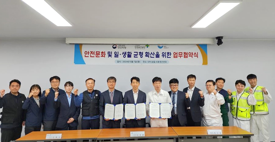 이미지 확대보기고용노동부 안산지청 안전보건공단 경기서부지사는 지난 7일 '안전일터 조성의 날'을 맞아 시흥시에 있는 ㈜SPC삼립을 방문해 현장점검 및 안전보건관리체계 구축을 지도하고 안전문화 및 일·생활 균형 확산을 위한 업무협약을 체결했다.