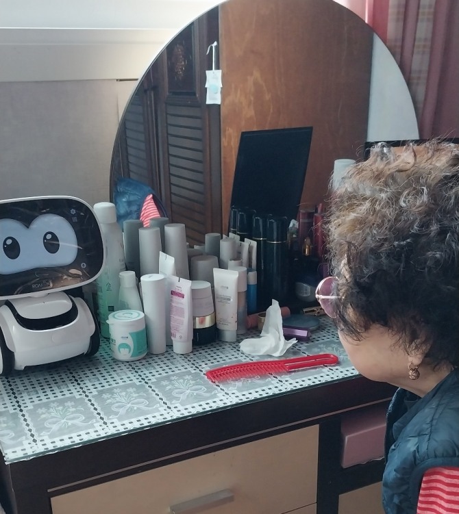 이미지 확대보기시 관계자에 따르면 어르신에게 제공되는 반려로봇은 일상생활 건강관리(약, 식사 복용 알림), 말벗 서비스(일상 대화, 정보 제공 등), 유용한 콘텐츠 제공(영상, 음악 등) 기능이 탑재되어 있어 어르신의 정서와 건강을 살핀다.