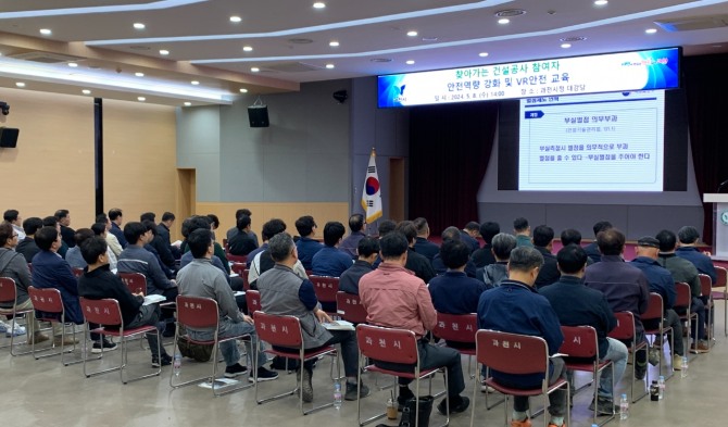 이미지 확대보기지난 8일 시청 대강당에서 열린 교육은 서울지방국토관리청과 국토관리원 전문 강사진의 강의로 진행됐으며, 현장 점검 시 주요 지적 사례와 부실 벌점 기준 및 부과 사례, 건설공사 안전사고 저감방안 △VR 기기를 통한 다양한 안전사고 발생 사례 체험 등에 대한 내용으로 진행됐다.