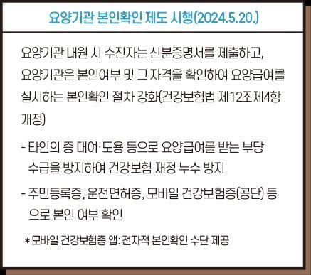 이를 예방하기 위해 20일부터는 건강보험으로 진료를 받기 위해서는 가입자나 피부양자 모두 주민등록증이나 운전면허증, 모바일 건강보험증(건강보험공단 발급) 등 사진이 붙어있고, 주민등록번호나 외국인등록번호가 포함돼 본인인지를 확인할 수 있는 증명서를 요양기관에 제시해야한다.