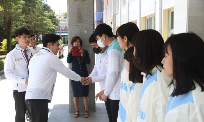 이어 전남교육청 관계자들은 학생들이 안전하게 뛰어놀 수 있도록 천연 잔디 보호매트가 설치된 학교 운동장을 돌아보고, 시설 환경의 개선 사항들을 꼼꼼히 점검했다.