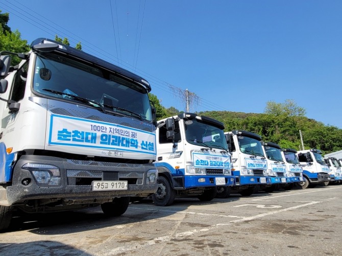 이미지 확대보기전남 순천시 청소차량 60대가 지난 9일부터 전남 동부권 지역현안인 국립순천대학교 의과대학 신설 홍보에 나섰다고 14일 밝혔다.