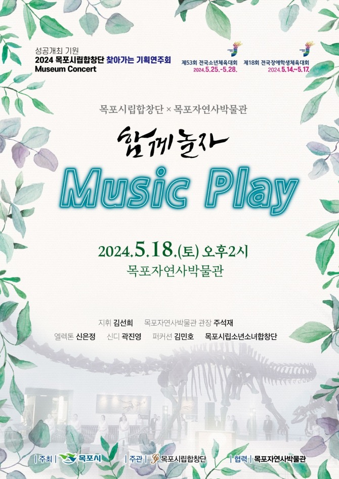 공연은 기획연주회 부제인 '함께 놀자 뮤직플레이(Music Play)'에 맞춰 영화 음악, 디즈니 명곡, 국내외 인기곡 연주와 관객 참여형 공연 등 다양한 프로그램으로 구성됐다. 또, 목포시립소년소녀합창단과 협연을 이뤄 5월 가정의 달을 맞아 온 세대가 공감할 수 있는 풍성한 무대를 선사하게 된다.