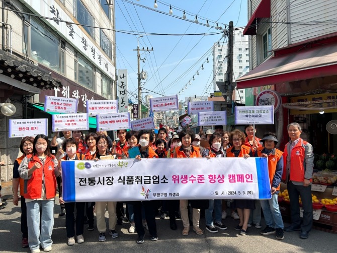 이미지 확대보기인천광역시 부평구는 지난 9일 부평구 부평종합시장 상인 및 이용객들을 대상으로 ‘전통시장 식품취급업소 위생수준 향상 캠페인’을 실시했다.