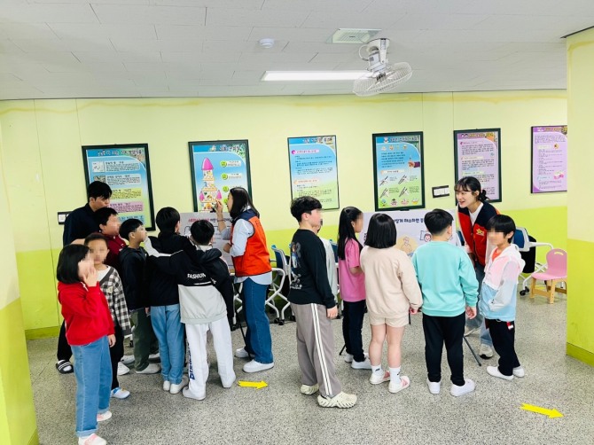 송월초 또래 상담자는 또래 친구에게 어떤 스트레스가 있었는지 물으며 관심과 응원의 마음을 전했고, 참여 학생들은 스트레스를 포스트잇에 적은 뒤 플라스틱 공에 붙여 과녁판을 맞추는 활동을 통해 스트레스를 해소하는 경험을 했다.