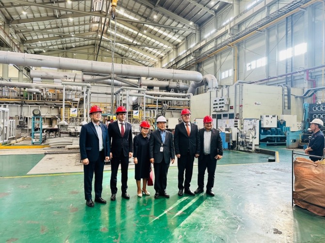 김윤중 회장은 “타지키스탄 일행 분들의 방문을 진심으로 환영한다”며 “자사에서 사용하는 알루미늄의 공급 협력 부분과 희토류 광물 등 다양한 분야에서 협력해 모두가 윈-윈 할 수 있는 일들을 만들어가자”며, 공장 방문에 감사의 인사를 전했다.