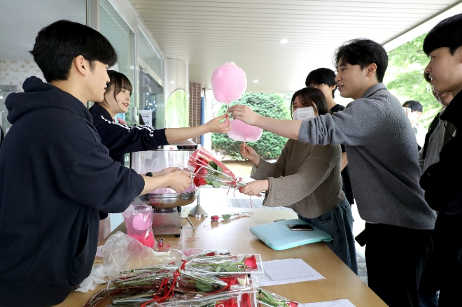 이날 행사에 참여한 구영준 반도체기계과 1학년 학생은 “처음 받아보는 장미꽃과 솜사탕에 쑥스럽지만 기분이 정말 좋다”며 “행사를 준비해준 총학에 감사하다”고 말했다.