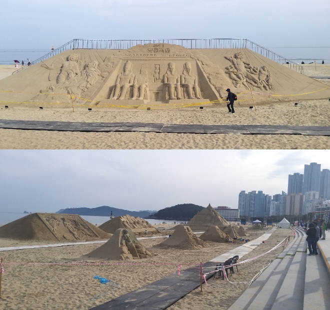 오는 24일 오후 7시 진행되는 개막식에는 '드로잉 쇼와 가수 울랄라 세션의 노래 공연, 불꽃 쇼'가 펼쳐진다. 이번 모래조각 전시는 다음달 9일까지 열린다.