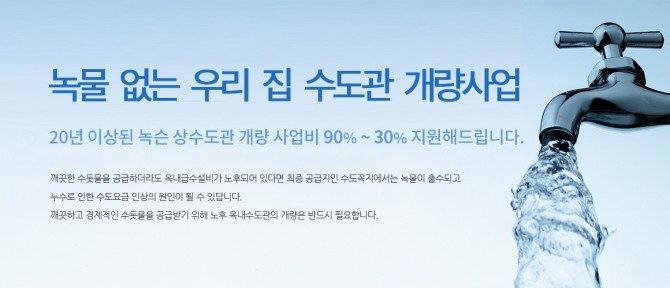 지원 대상은 주택의 급수관이 노후돼 녹물이 나오거나 수압 저하 등으로 수돗물 사용에 불편을 겪고 있는 가구다. 올해 현재까지 10세대가 신청한 만큼 약 20세대 정도를 추가로 지원할 수 있다.