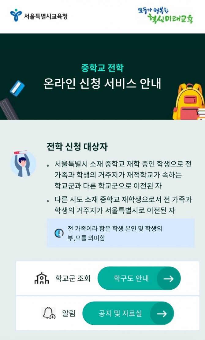 서울시교육청, '중학교 전학 온라인 서비스' 3일부터 실시
