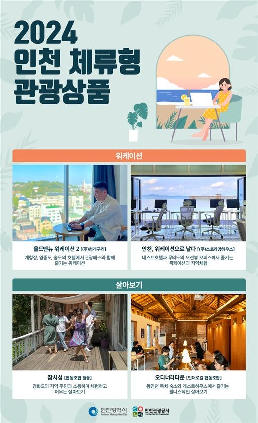 김충진 시 문화체육관광국장은 “인천은 오래 머무를수록 진정한 매력을 느낄 수 있는 곳”이라며 “체류형 관광상품이 인천의 생활 인구를 늘려 인구소멸 위기에 대응하고 원도심 활성화에도 기여하길 바란다”고 밝혔다.