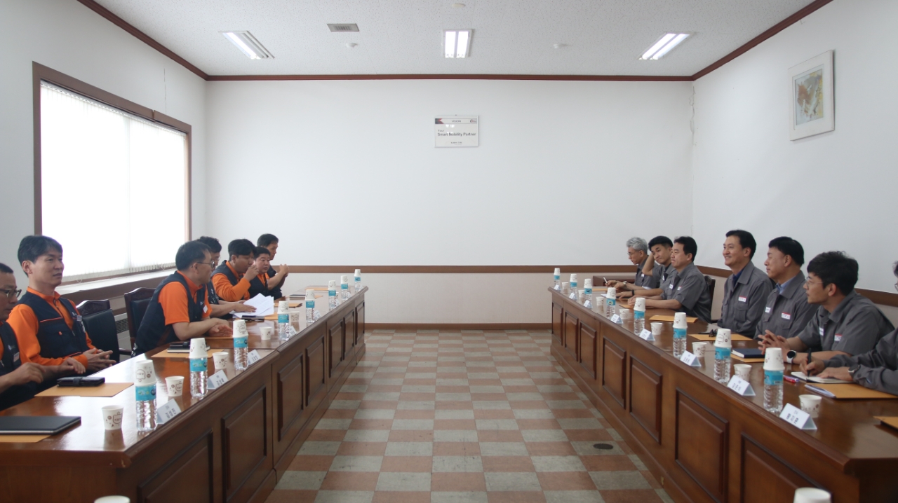이미지 확대보기이날 상견례에는정일택 대표이사 사장과 박래필 금속노조 광주전남지부 수석부지부장을 비롯하여, 사측 대표위원인 김명선 생산기술총괄 부사장, 노측 황용필 대표지회장 등 16명이 참석했다.
