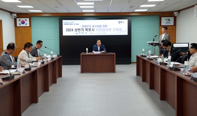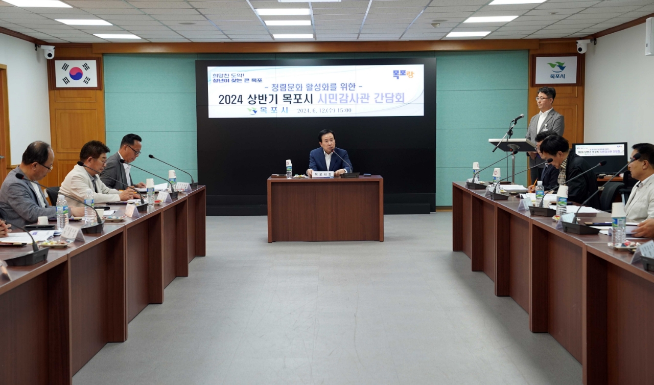 이미지 확대보기전남 목포시는 지난 12일 시청 상황실에서 2024년도 상반기 시민감사관 간담회를 개최했다.