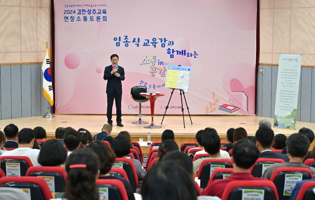 이날 김천, 상주교육 현장소통토론회에는 임종식 경북교육감과 강영석 상주시장, 남영숙 경북도의회 농수산위 위원장, 김홍구 경북도의회 의원을 비롯해 김천․상주 지역의 유․초․중․고등학교 교(원)장, 학교운영위원장과 학부모회장, 미래교육지구 마을학교 교사, 교육발전특구 관계자, 녹색어머니회, 학생상담자원봉사자회, 본청 주민참여예산 위원, 주민감사관, 교육계 원로, 희망 학부모와 지역민 등 270여 명이 참석해 성황리에 진행됐다.